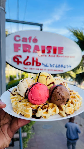 Café FRAISIE is mostly known for its custom made cakes in any design you would like to have and different, delicious and mouthwatering French pastries and fast foods as well. The restaurant covers some of Fast foods and different kinds of flavors of juices and ice cream 🍦. You also can get hot drinks and cold drinks as well. It is all in one home of yours for sure, come and visit us for any occasion our cake is number one in the city as well.